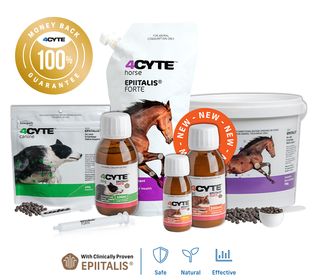 No matter who they are or what they do for us, sometimes, our animals need our support too and that’s why we’ve developed 4CYTE™. Made with our world-exclusive, patented ingredient – Epiitalis®, 4CYTE™ is scientifically proven to prevent and treat joint health issues arising from osteoarthritis, acute joint injury, and general wear and tear.